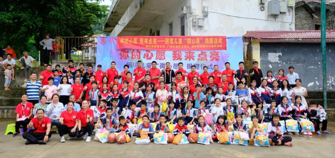 五月的天,淡阳初夏,湿暖的光滋养着万物,温暖的心点亮心愿。在“六一”儿童节到来之际,我公司总经理兼广西五金机电商会党支部书记韦德盖同志与30多名爱心企业家驱车前往横州市三叉村参加广西五金机电商会、南宁东博国际五金机电城联合开展“你的心愿 我来点亮”困境儿童微心愿捐赠活动,以爱践行点亮儿童梦想。